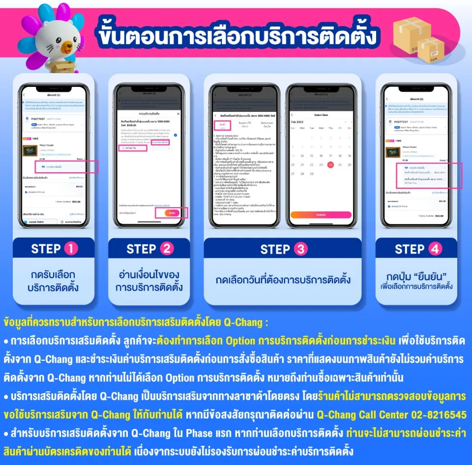 - 2.บันทึกคลิปวีดีโอ โดยถ่ายให้เห็นภาพรอบด้านของกล่องสินค้าและใบปะหน้ากล่องที่มีชื่อ และที่อยู่ของผู้รับ รวมถึงรุ่นสินค้าโดยชัดเจนจากนั้นบันทึกคลิปวีดีโอแบบต่อเนื่องในคลิปเดียวกันเท่านั้นโดยไม่มีการตัดต่อวีดีโอ ในขณะแกะกล่องสินค้าจนกระทั่งติดตั้งและเปิดใช้งานสินค้าสำเร็จ