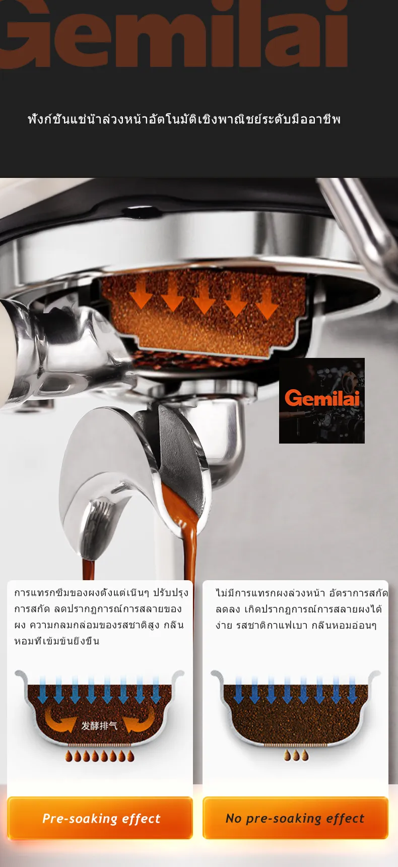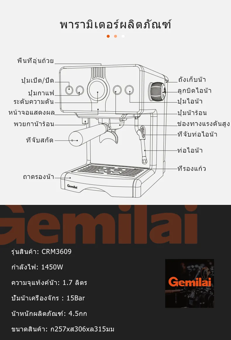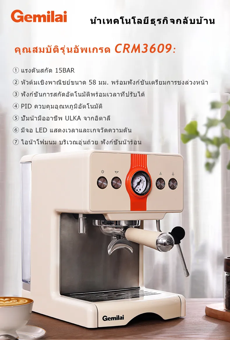 Gemilai ใหม่ CRM3609 เครื่องชงกาแฟ 15BAR อัพเกรด CRM3605 เครื่องชงกาแฟเอสเปรสโซชุด 58 มม.เครื่องบดกาแฟกดกาแฟไฟฟ้าพร้อมเครื่องตีฟองนม
