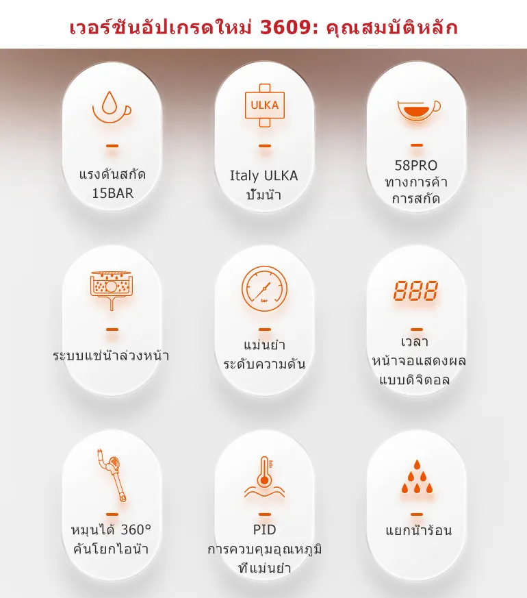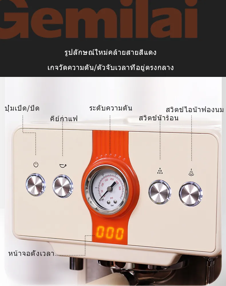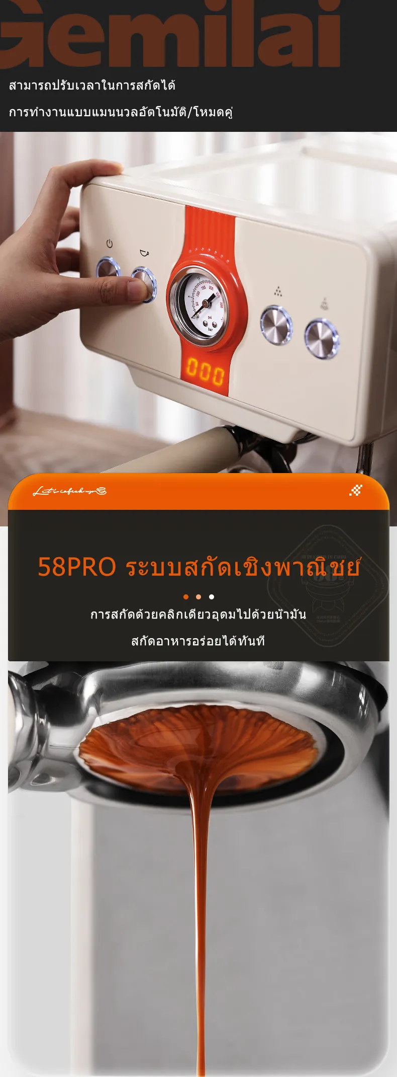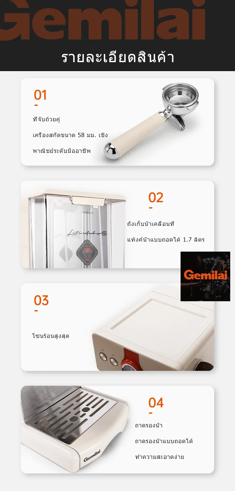 Gemilai ใหม่ CRM3609 เครื่องชงกาแฟ 15BAR อัพเกรด CRM3605 เครื่องชงกาแฟเอสเปรสโซชุด 58 มม.เครื่องบดกาแฟกดกาแฟไฟฟ้าพร้อมเครื่องตีฟองนม
