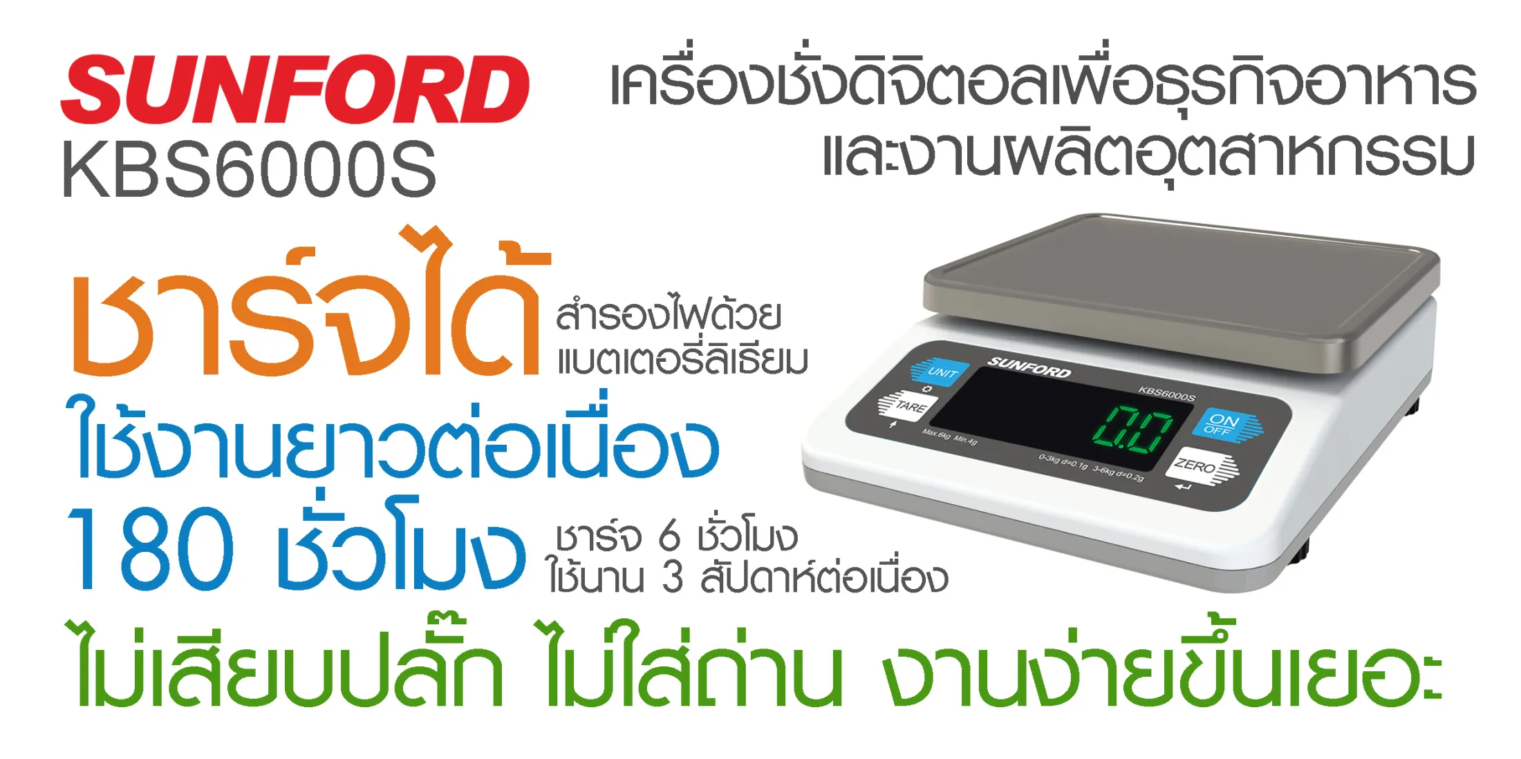 เครื่องชั่งสำหรับธุรกิจอาหาร เบเกอรี่ เคาเตอร์งานครัว และงานอเนกประสงค์ ออกแบบพิเศษเพื่อธุรกิจผลิตอาหารโดยเฉพาะSUNFORD KBS6000S
