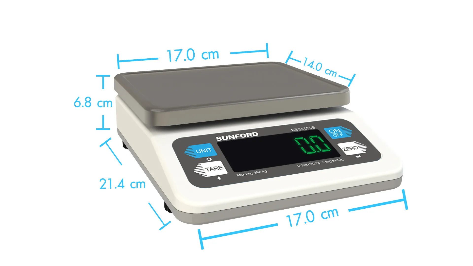 - เครื่องชั่งดิจิตอล SUNFORD KBS6000Sเครื่องชั่งสำหรับธุรกิจอาหาร เบเกอรี่ เคาเตอร์งานครัว และงานอเนกประสงค์แบตเตอรี่สำรองไฟติดตั้งในภายใน