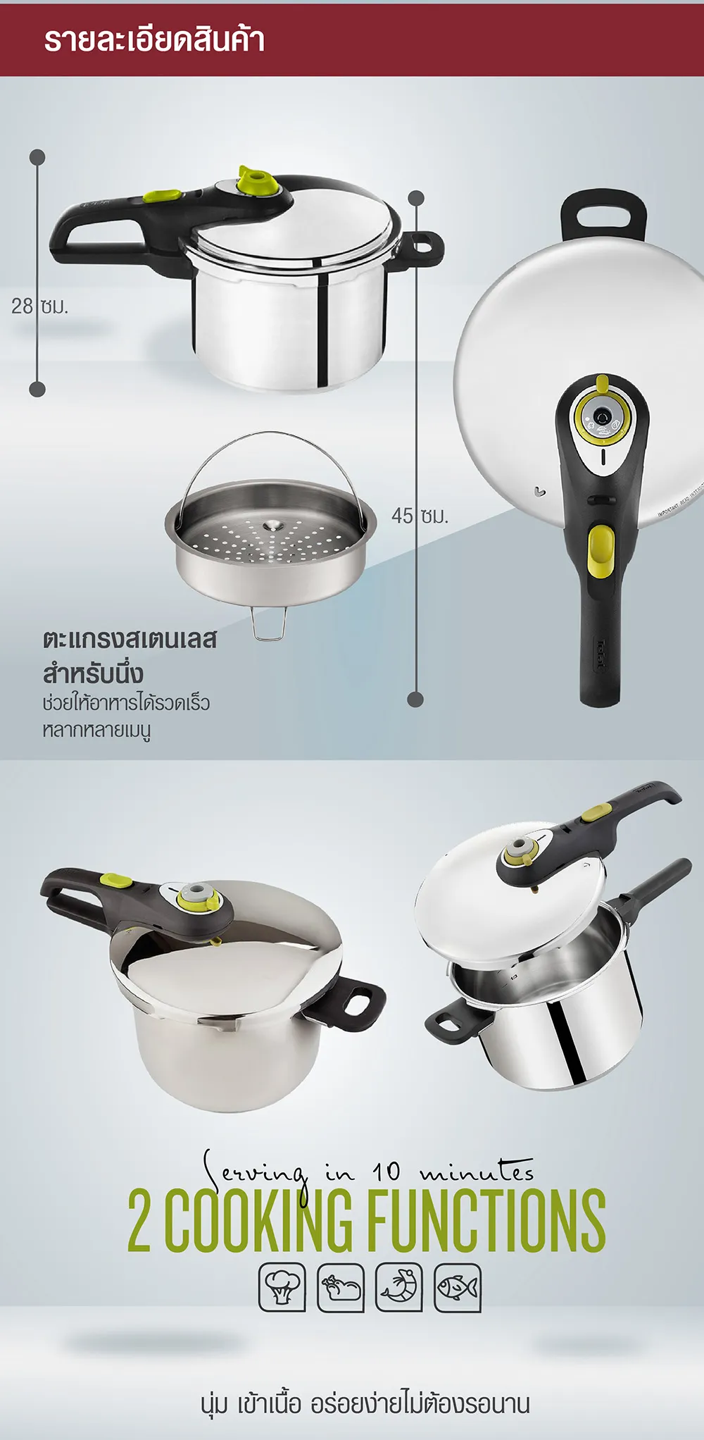 - ใช้ได้กับเตาทุกประเภท รวมถึงเตาแม่เหล็กไฟฟ้า