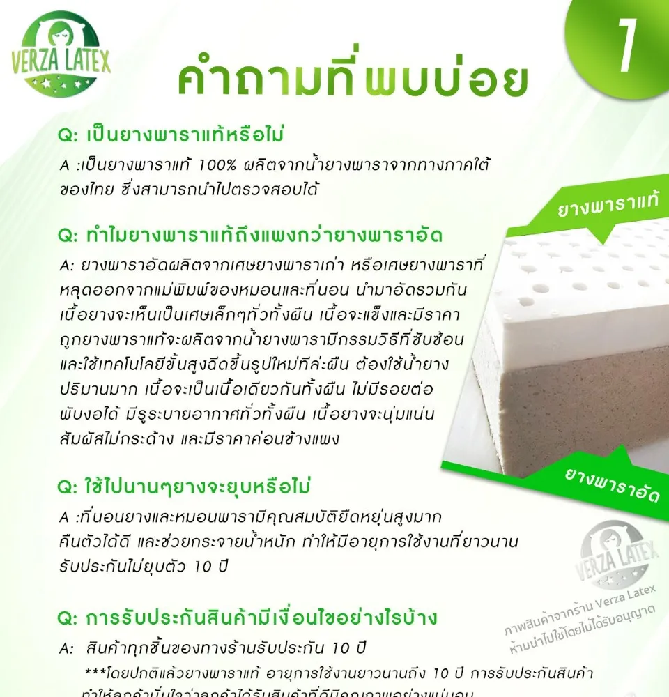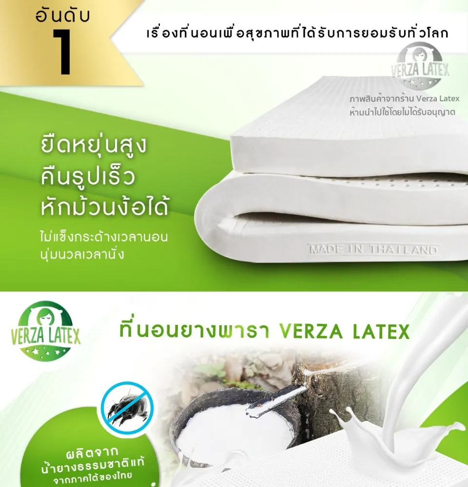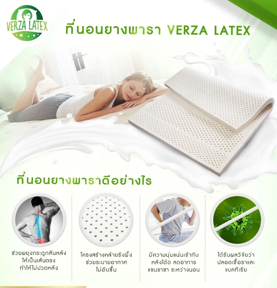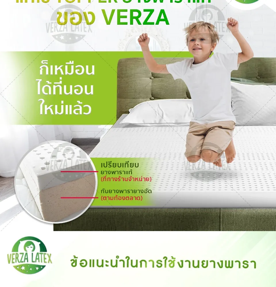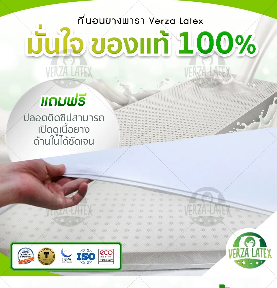 F1883 VERZA LATEX ส่งฟรี!! ผ่อน0% TOPPER ที่นอนยางพาราแท้ 5 ฟุต หนา 2 นิ้ว รุ่น Premium/Lite รุ่นPremiumแถมปลอกถอดซักได้และหมอน รุ่น Lite ไม่มีของแถม ประกัน 10 ปี
