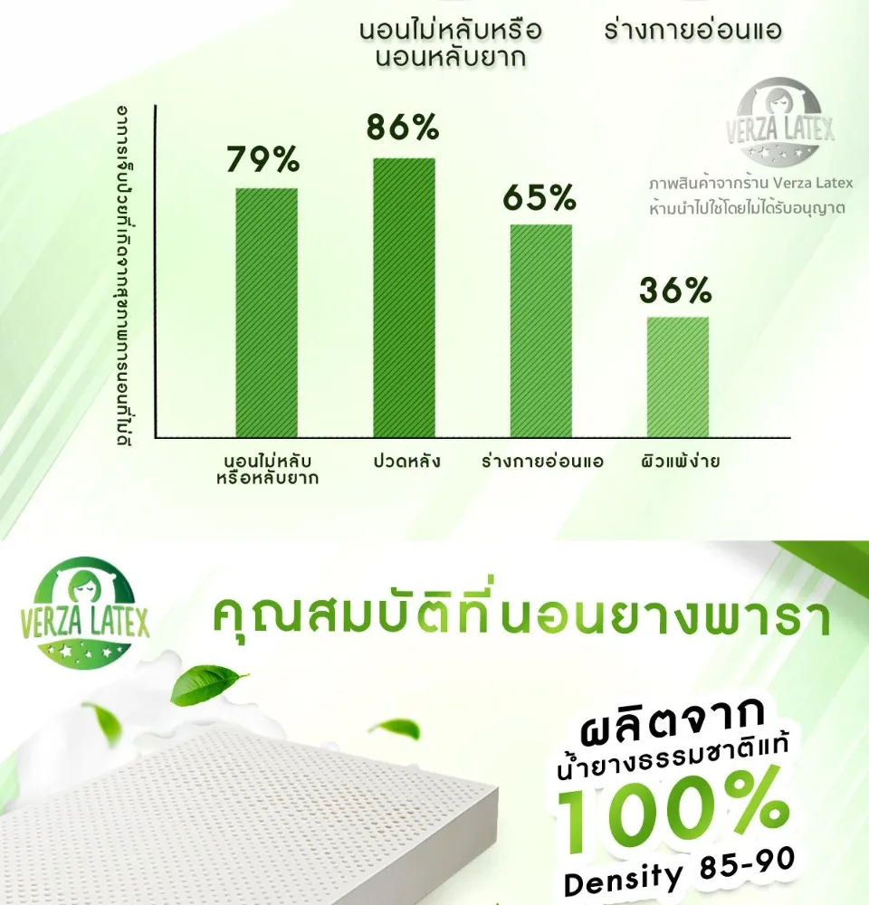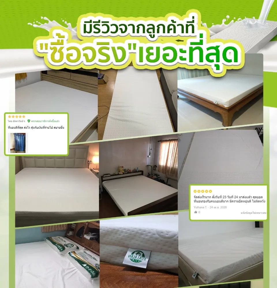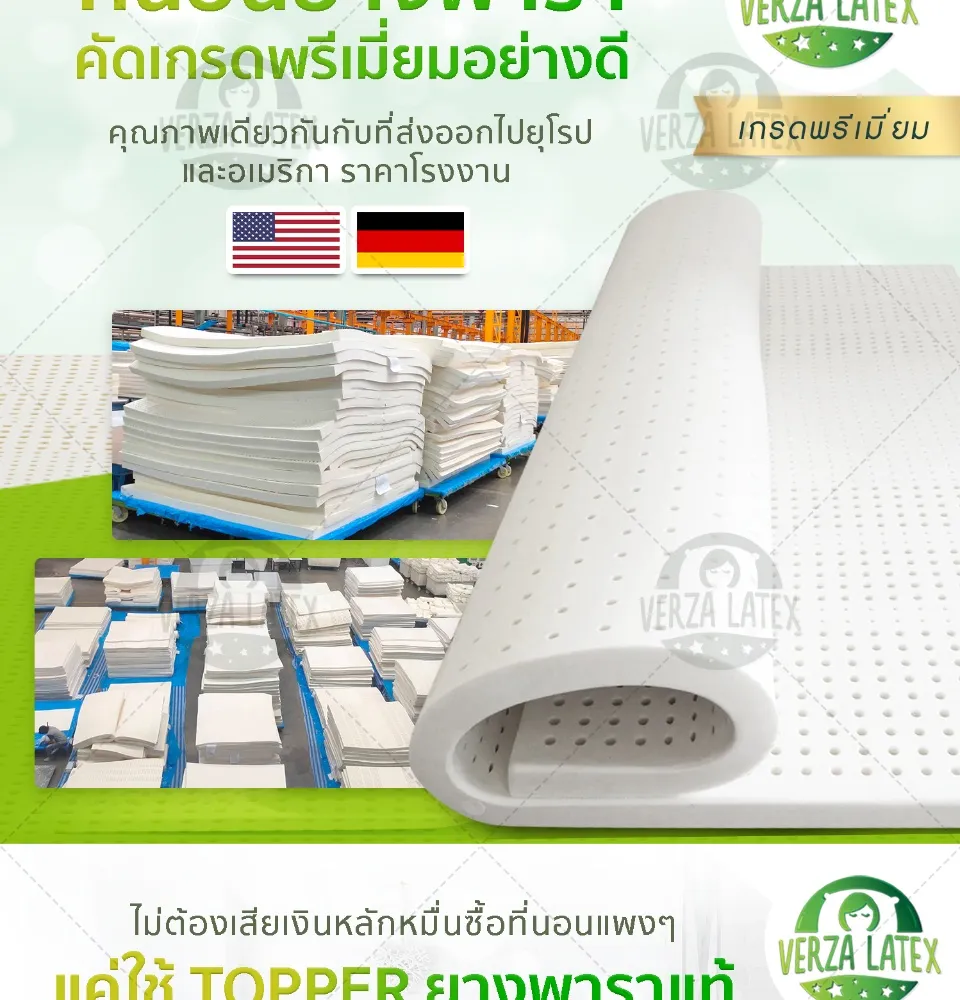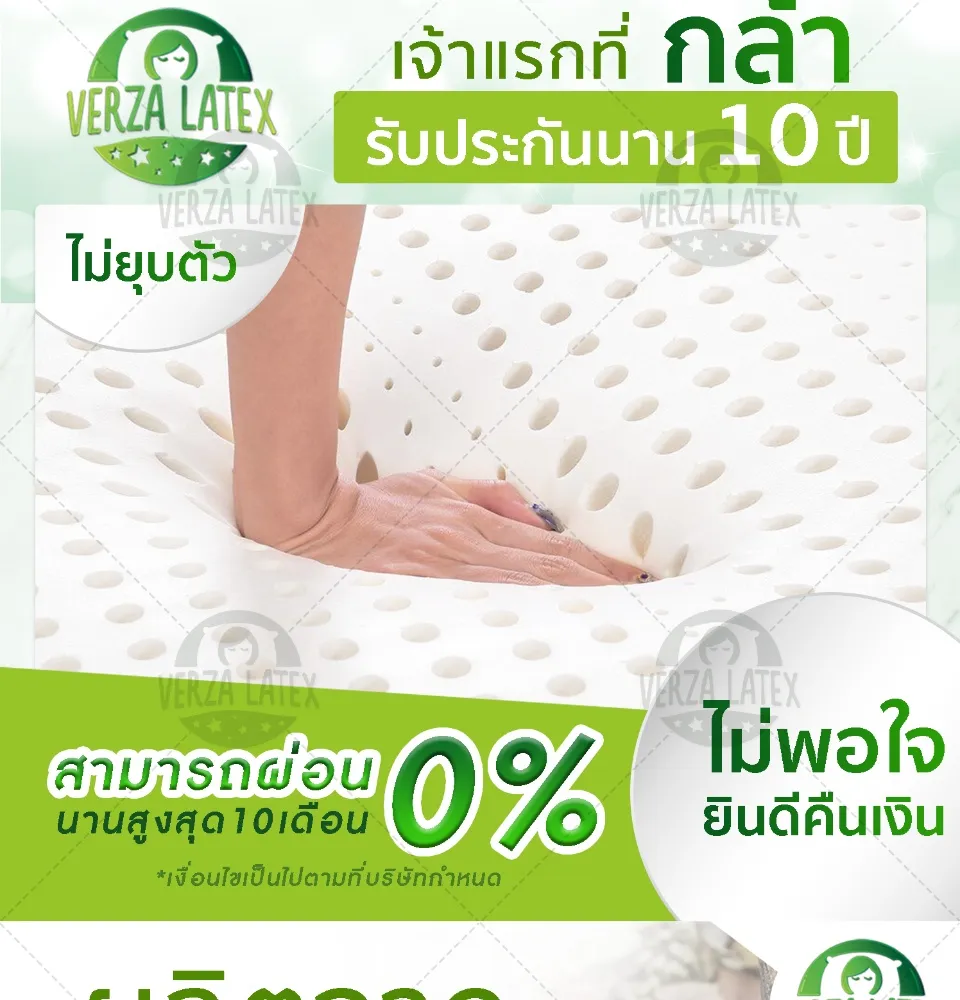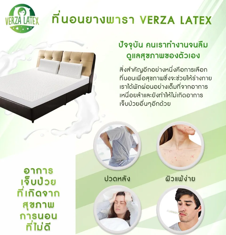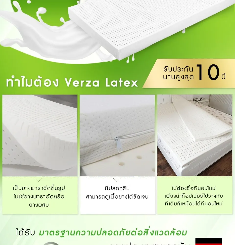 F1883 VERZA LATEX ส่งฟรี!! ผ่อน0% TOPPER ที่นอนยางพาราแท้ 5 ฟุต หนา 2 นิ้ว รุ่น Premium/Lite รุ่นPremiumแถมปลอกถอดซักได้และหมอน รุ่น Lite ไม่มีของแถม ประกัน 10 ปี
