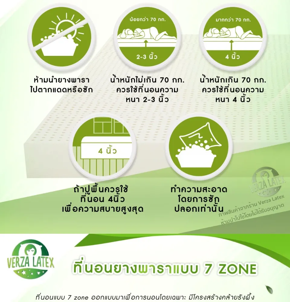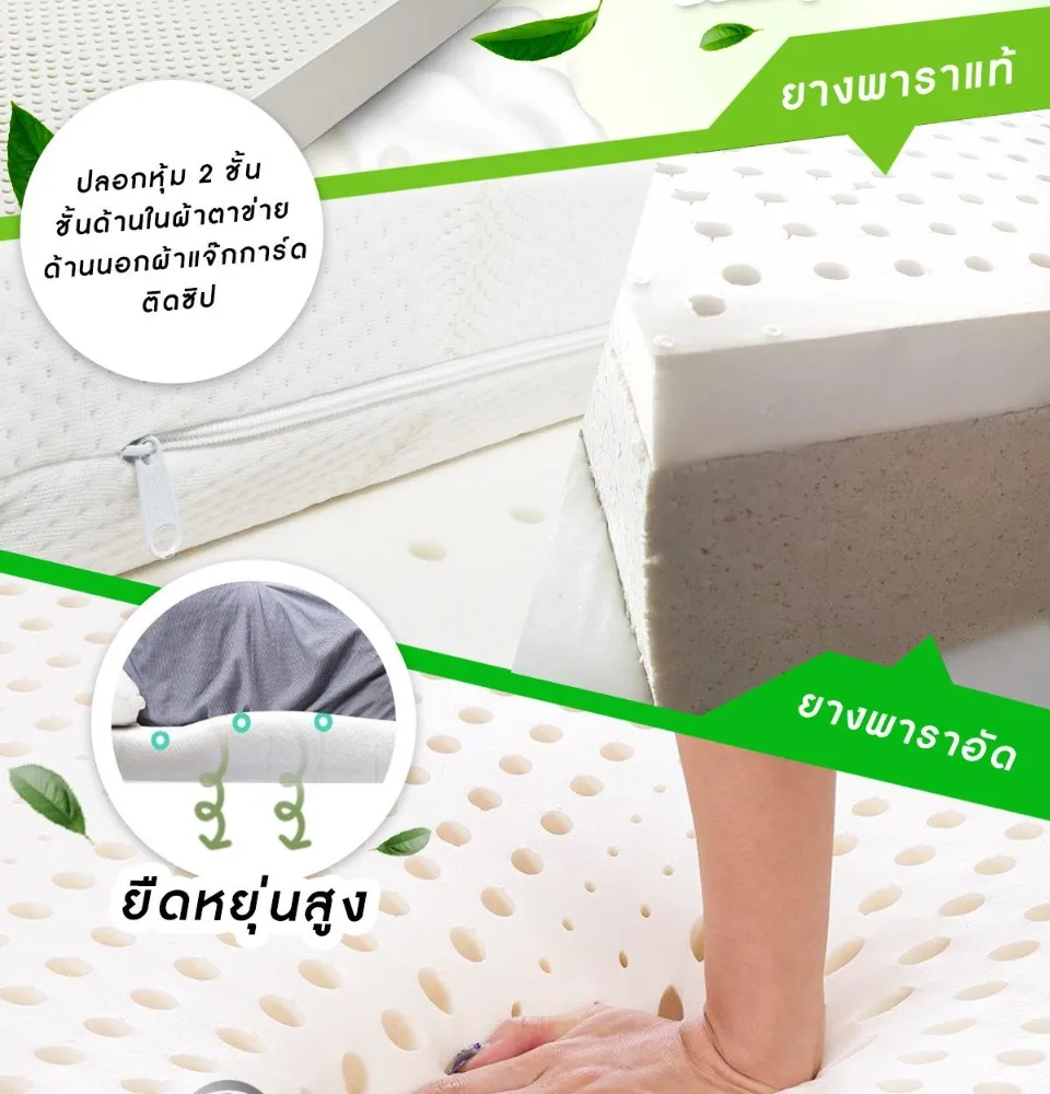 - ที่นอนยางพาราแท้ทั้งแผ่นใช้กรรมวิธีฉีดขึ้นรูปอย่างดี