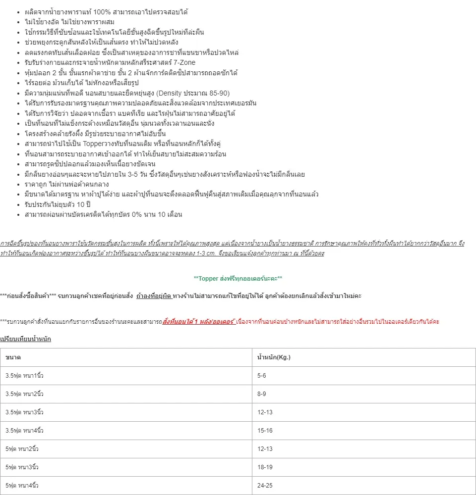 - ***โปรดอ่านทางนี้*** รบกวนลูกค้าสั่งที่นอนแยกกับรายการอื่นของร้านนะคะ และสามารถสั่งที่นอนได้ 1 หลัง/ออเดอร์ เนื่องจากที่นอนมีน้ำหนักค่อนข้างเยอะ และไม่สามารถใส่อย่างอื่นรวมไปในออเดอร์เดียวกันได้คะ ต้องส่งแยกกันคะ