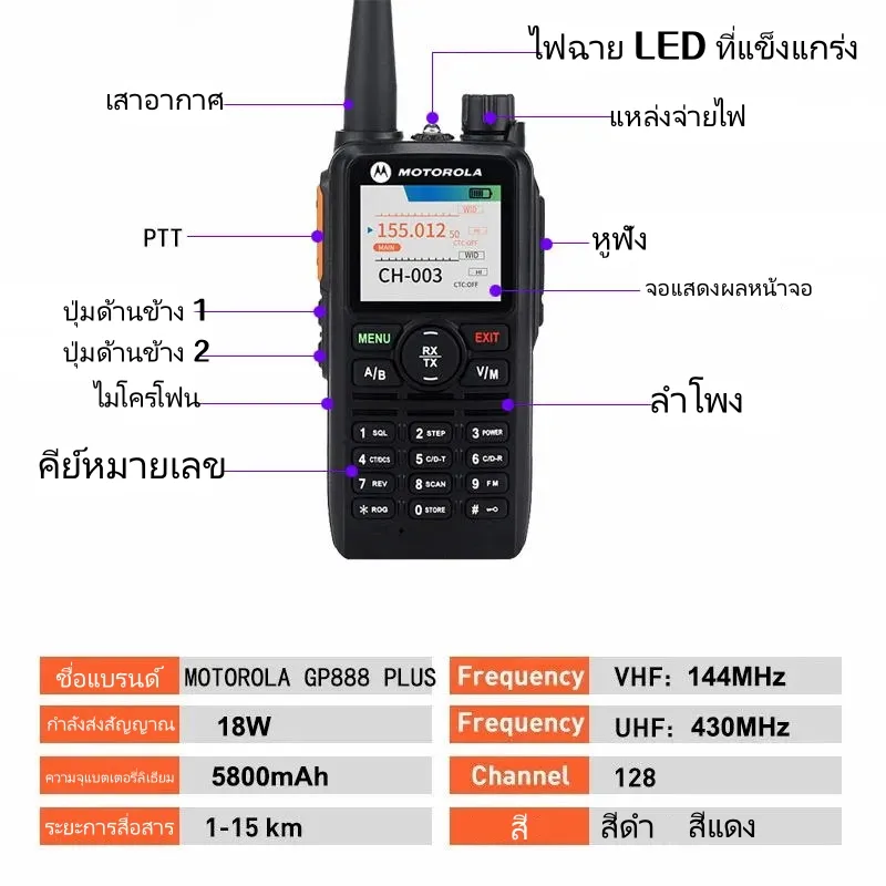 หมายเหตุ:GP888 PLUS สีแดงใช้งานได้ที่ 200-290mhz เท่านั้น!!!