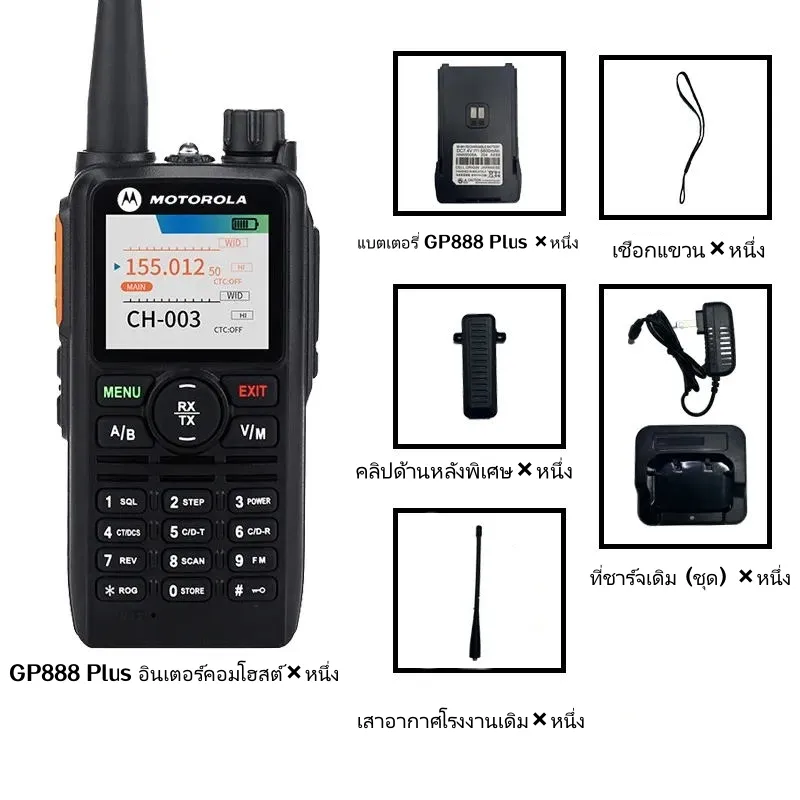 วิทยุสื่อสาร MOTOROLA GP888 PLUS วิทยุเอฟเอ็มแบบพกพา เครื่องส่งรับวิทยุ 240 ช่อง IP54 กันน้ำและกันฝุ่น ความจุสูง 5800mAh walkie talkie 18กำลังวัตต์ 20กิโลเมตร